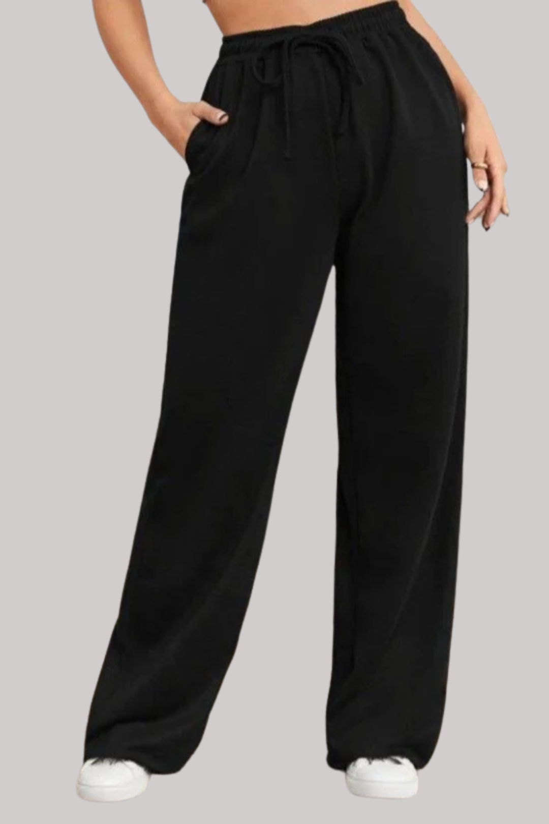 ادخل إلى الأناقة الخالدة مع بنطالنا الواسع ذو الخصر العالي باللون الأسود .
