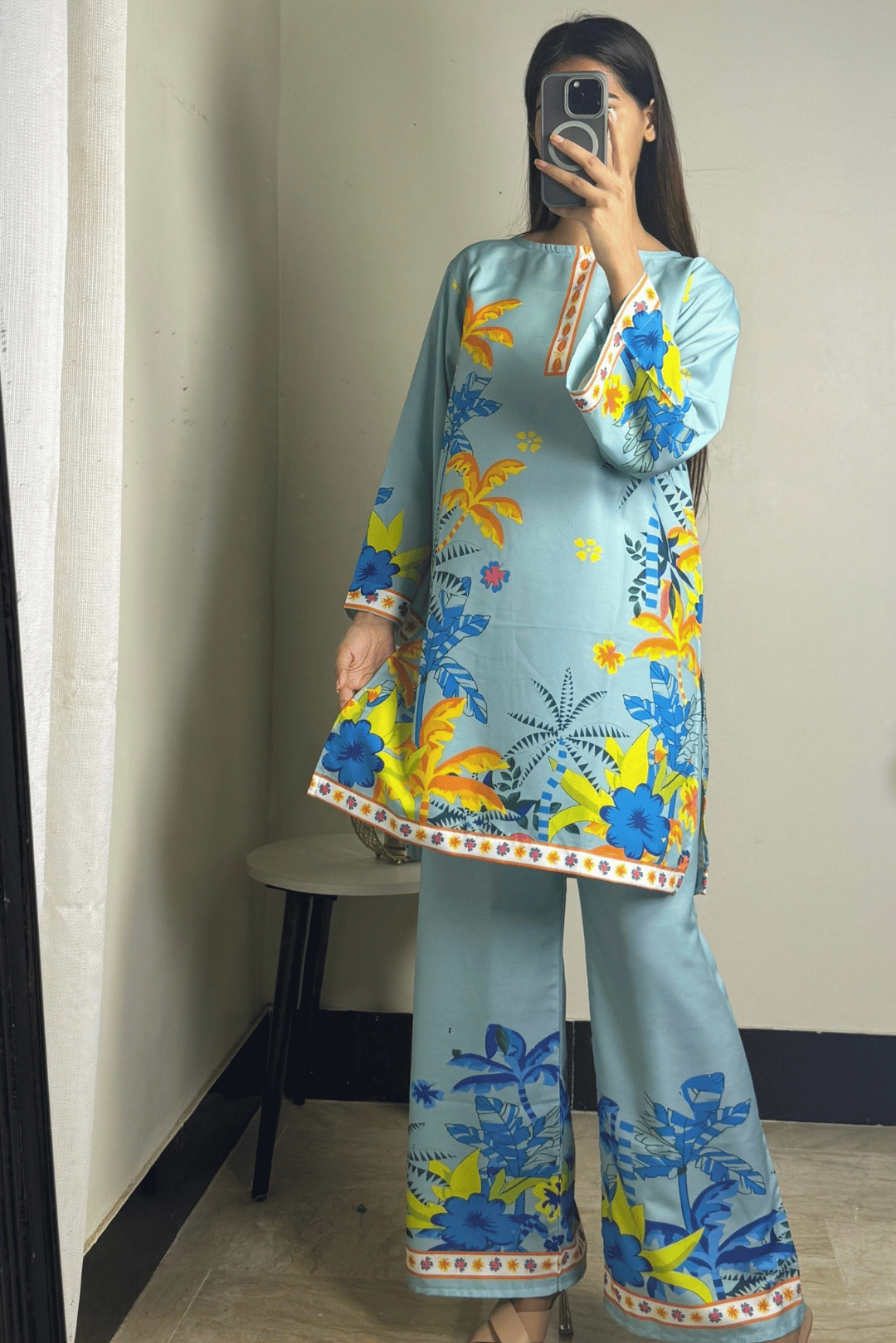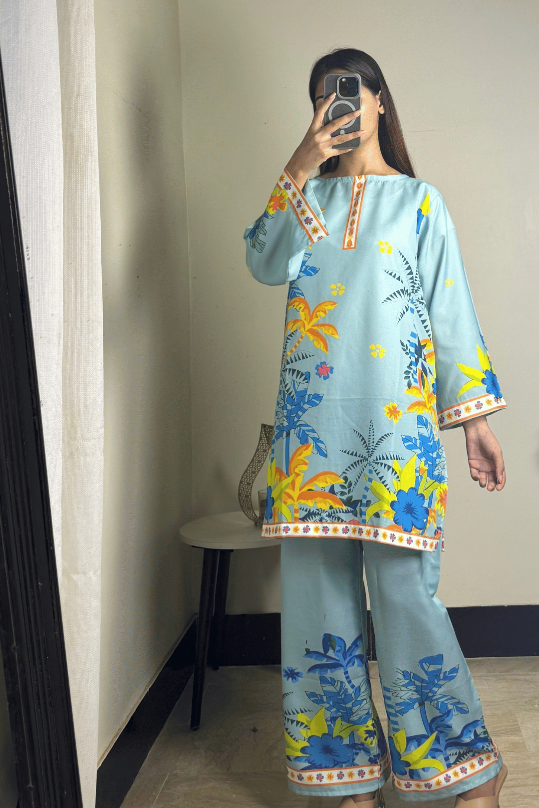Step into effortless freshness with our Eid Festive Breeze Printed Co-Ord Set — a vibrant blend of botanical charm and serene elegance.
