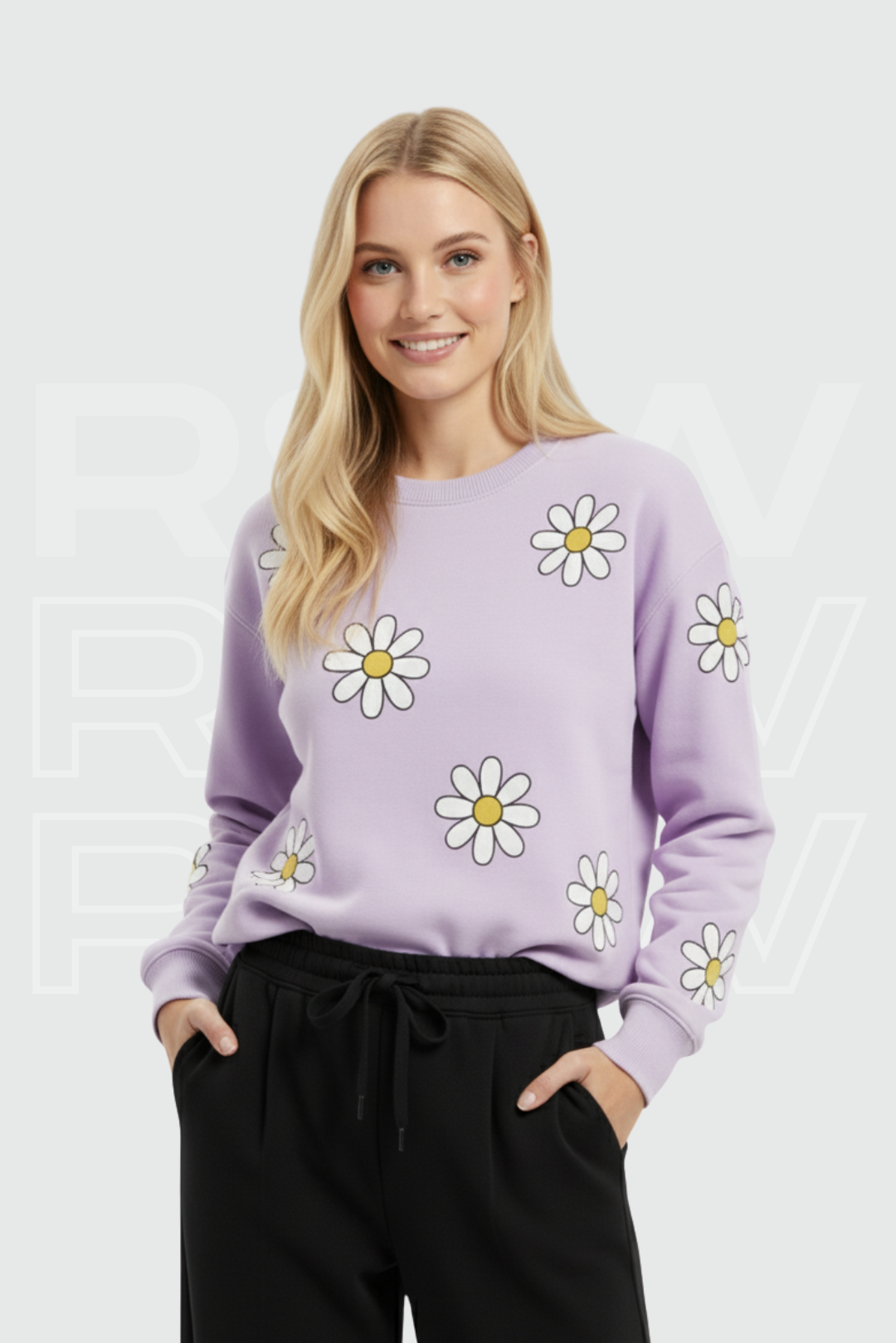 Bring a playful pop of color to your wardrobe with the Women's Daisy Sweatshirt & Trouser Set – Lilac Black Playful Combo Wear. This coordinated two-piece set offers effortless comfort and a fresh, modern silhouette, perfect for brightening any casual day.